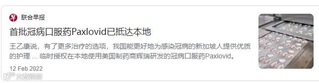 今年2月12日,首批新冠口服药Paxlovid已经运到,比其他亚洲国家早了一个月左右。