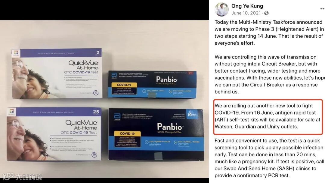 从2021年6月开始,卫生部长就在社交媒体上宣布,新加坡大规模引入ART抗原快速检测,可以在全岛药房买到。