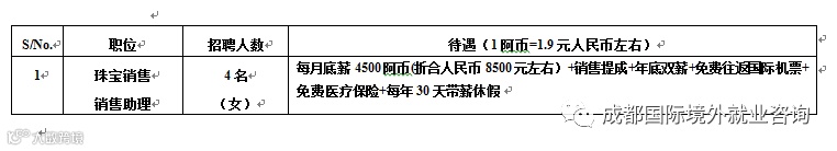 雇主:迪拜L.A.L连锁珠宝销售公司,在阿联酋迪拜和首都阿布扎比有很多珠宝连锁销售店