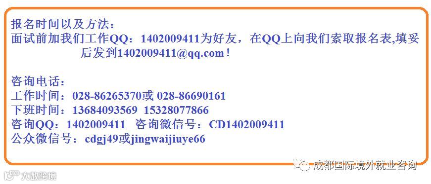 外派公司:成都国际经济技术合作股份有限公司【拥有合法外派劳务资格的专业公司】, 公司长期从事阿联酋外派劳务工作,拥有丰富的外派工作经验,可以确保劳务人员在国外工作的安全性和合法性。