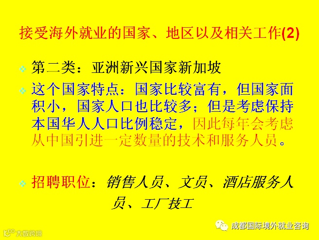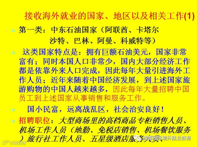 境外工作岗位有哪些?到境外工作安全吗?境外实际工作和生活情况如何?应聘境外工作的条件有哪些?如何参加境外工作应聘?这些林林总总问题,作为有20年开展“境外就业”工作经验的国内合法外派劳务公司--成都国际公司来为你一一解答!