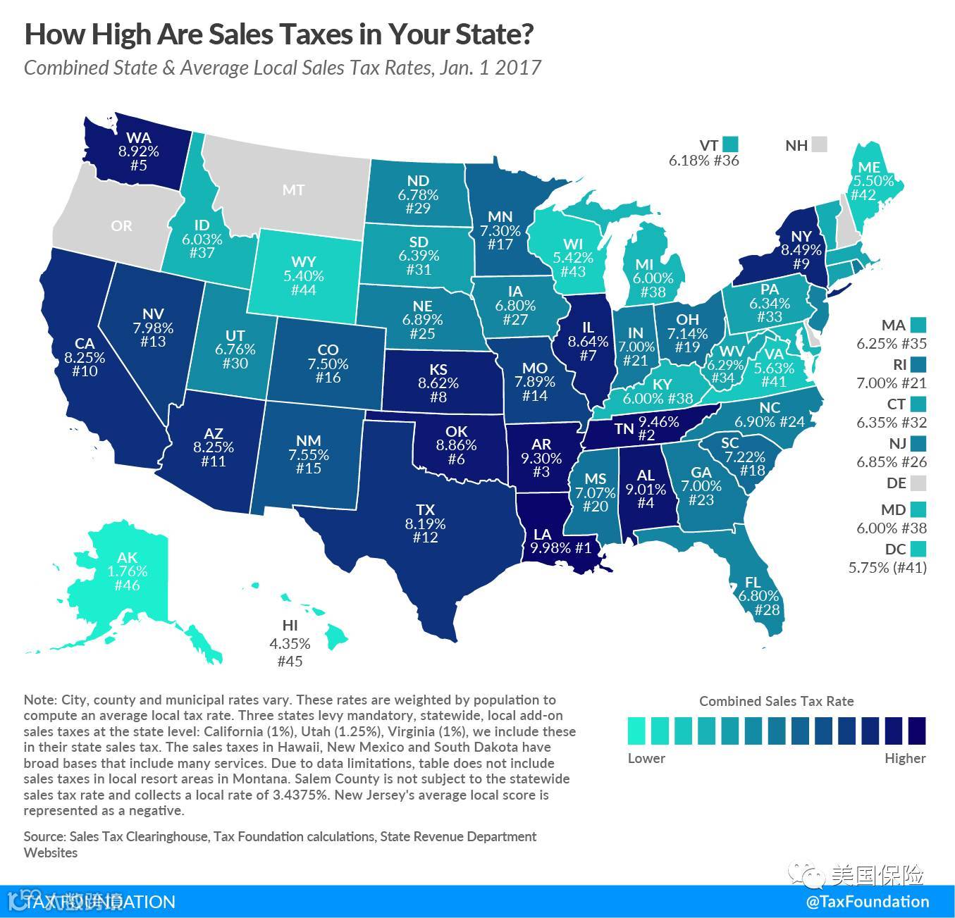 销售税是一种大家有可能每天都接触到的税。除部分免税的生活必需品,如超市的农产品等,美国的绝大多数商品标价是不含销售税的,收据上一般可看到单价下面列出的SalesTax字样。每个州的销售税税率略有不同。同时各位采购达人一定要记得没有销售税的州有以下几个:Oregon, Delaware和New Hampshire。这些销售税率的高低在某种程度上决定了您和别的州的小伙伴儿们在生活成本上的差异。因此大家如果有意向土豪一把购买大件贵重商品,可以考虑驱车前往就近的免税州购买,顺便旅游一把。比如住在西雅图的小伙伴儿们可能更愿意去俄勒冈州的outlet买大件或名牌商品。当然如果您只是一心奔着免税的目的跑去,要计算好油钱和省去的销售税到底哪个要划算哦!
