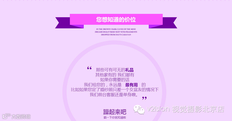 一;如果说常规婚照仅仅是挠痒,那么V2的定制就是直接给传统婚照掌掴