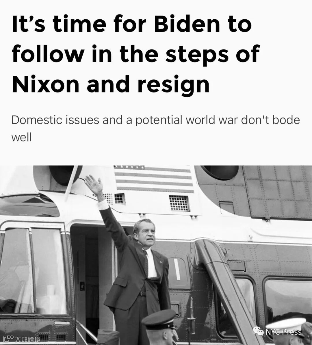 《华盛顿时报》:是时候让拜登像尼克松一样辞职了!