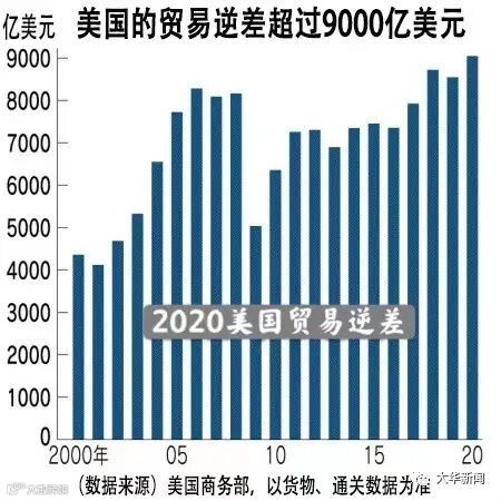 2020年的逆差比4年前增加2成。虽然关税和中美达成“第一阶段协议”使得对华逆差扩大暂时放缓,但只是象征性的指标。