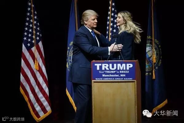 2月8日,新罕布什尔州曼彻斯特无线竞技场,伊万卡·特朗普和她的父亲在一场竞选集会上。