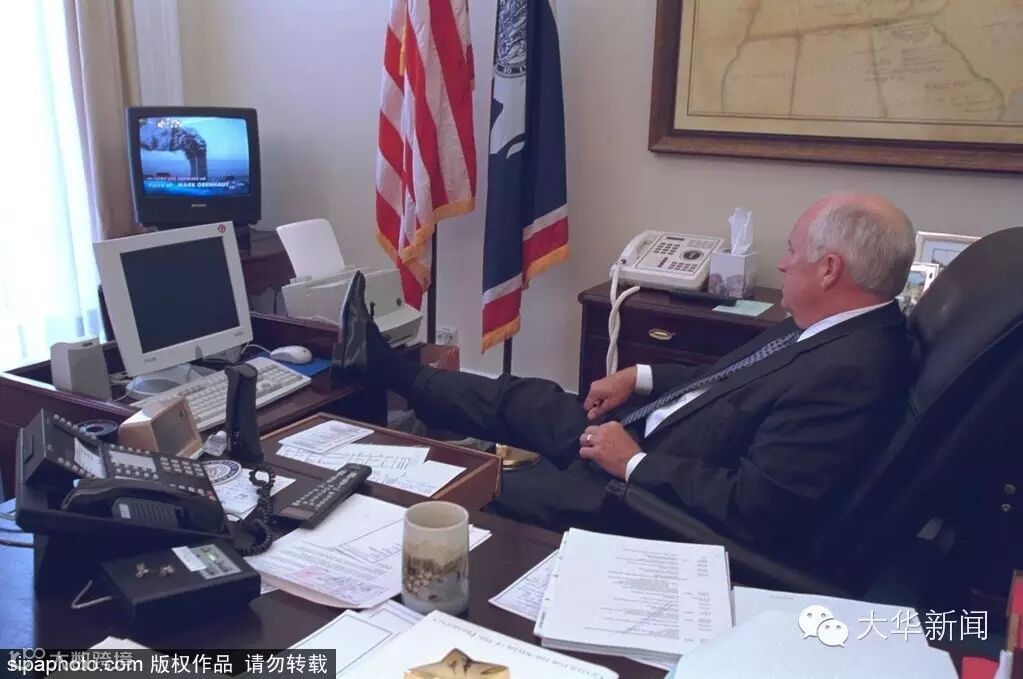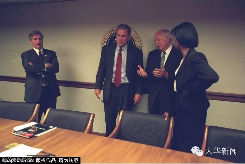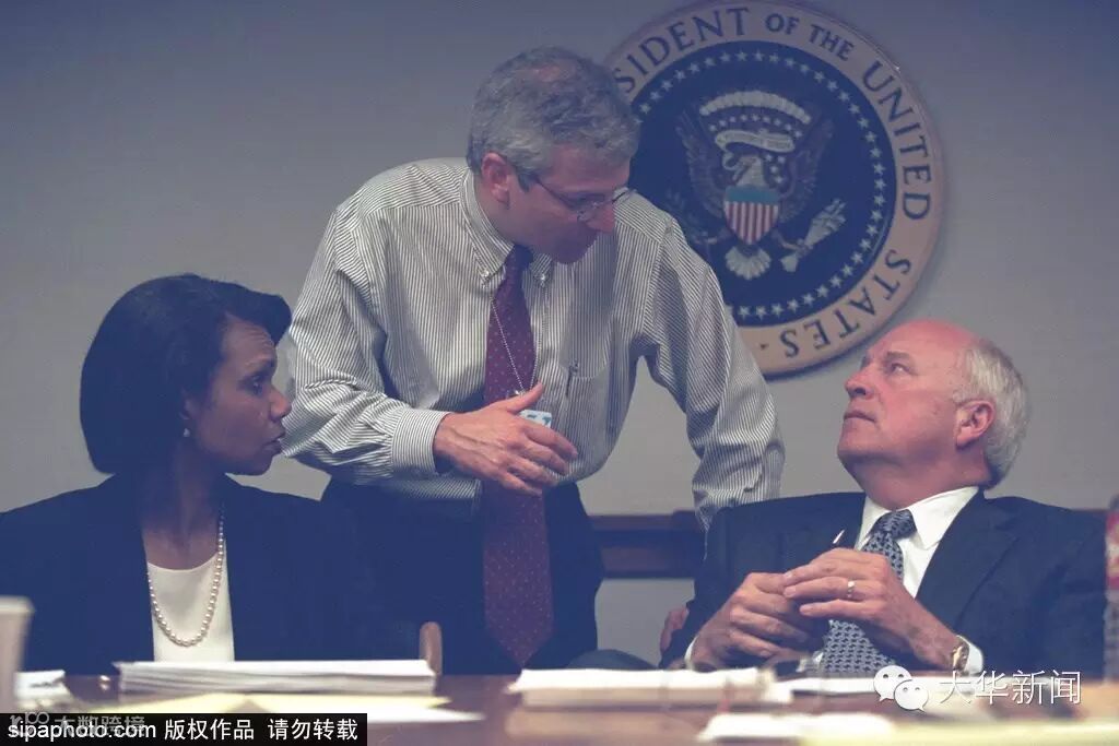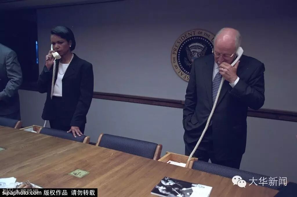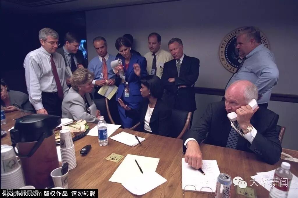 当地时间2015年7月28日讯,美国,最新一组记录9·11恐怖袭击后布什政府主要成员反应的照片近日得以公布,照片由前美国副总统迪克·切尼的摄影员工拍摄,应一位纪录片制作人根据《信息自由法》的照片公开要求而最终公布出来。照片真实反映了9·11恐怖袭击后美国高层官员的震惊和恐惧。