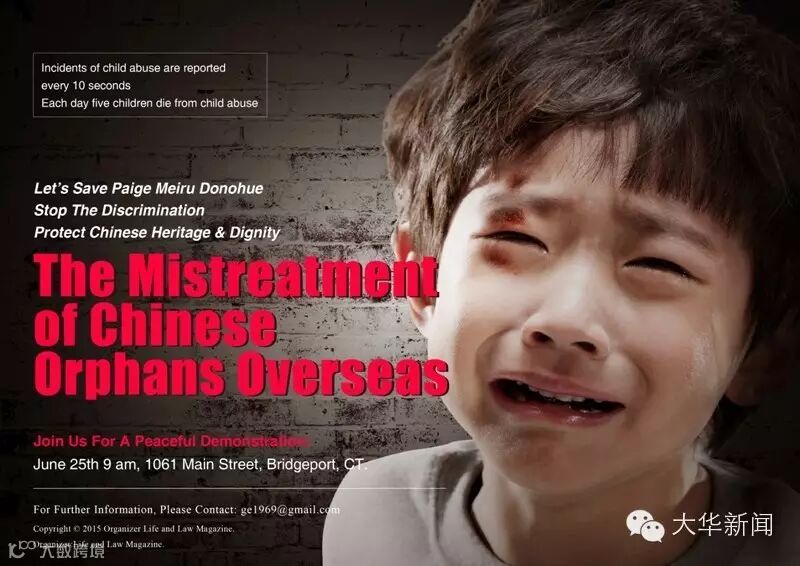 然而近日这则新闻则引发了本人乃至美国社会异常的愤怒。美国著名电视台A&E副总裁Diane Donohue 于2008年通过美国当地领养机构在陕西西安领养一名4岁中国女孤儿,起名为 Paige Meiru Donohue. 原本这名可爱的中国孩子会像无数其他被领养的孩子一样,来到异国他乡得到如同亲身父母般的关爱,感受家的温暖并且接受良好的教育,然而殊不知这才是这个孩子噩梦的开始。首先,副总裁Diane Donohue的家庭完全不符合美国法律对于领养孩子家庭的要求:这个家庭必须是一个完整的,并且能够给孩子带来幸福的家庭。在2008年领养这位西安孤儿之前,Diane的丈夫Patrick Donohue已经多次出轨并且夫妻二人的婚姻关系已经到达了离婚边缘。Diane通过欺骗,编造事实的手段向领养机构编造了家庭和谐幸福的假象后成功领养了这个女孩儿。
