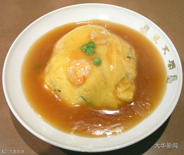 这是像“美国加州牛肉面大王”一样遍布日本料理界的美食,但其实日本人自己都在维基百科上说,“不光是在天津,在整个中国范围内都没有对应的做法。”这种日本版的“中华料理”天津饭,有点像蛋包饭,做法是将蟹肉蟹黄加入雞蛋,加上大量芽菜,虾仁,放上米饭,再打个厚厚的芡汁便成。