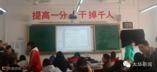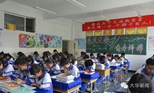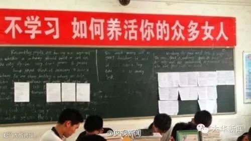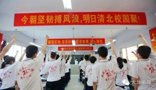 2015年5月21日,广西桂北,高三教室里高悬着一条条“励志”的高考标语,成了一道独特的风景线,其中不乏“进清华,与主席总理称兄道弟;入北大,同大家巨匠论道谈经”这样的霸气标语。