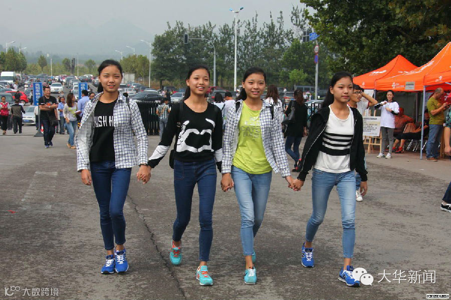 2014年09月12日,山东省济南市,山东省艺术学院大一新生报到。2014年艺考中备受关注的菏泽四胞胎“冰清玉洁”同时考入了山艺舞蹈学院。学校为方便四胞胎报到和生活起居,安排专人负责搬运四胞胎的行李,并安排四人同住一间宿舍。今年16岁的申冰、申清、申玉、申洁四胞胎姐妹,一样的长相、一样的装扮,加上修长的身材,在艺考的考场上,格外引人注意。而大学报到时,父母怕她们再次引起其他人的关注,从而影响正常上学,所以改变了想让她们穿上统一服装的想法,特意改成穿两种风格的衣服。