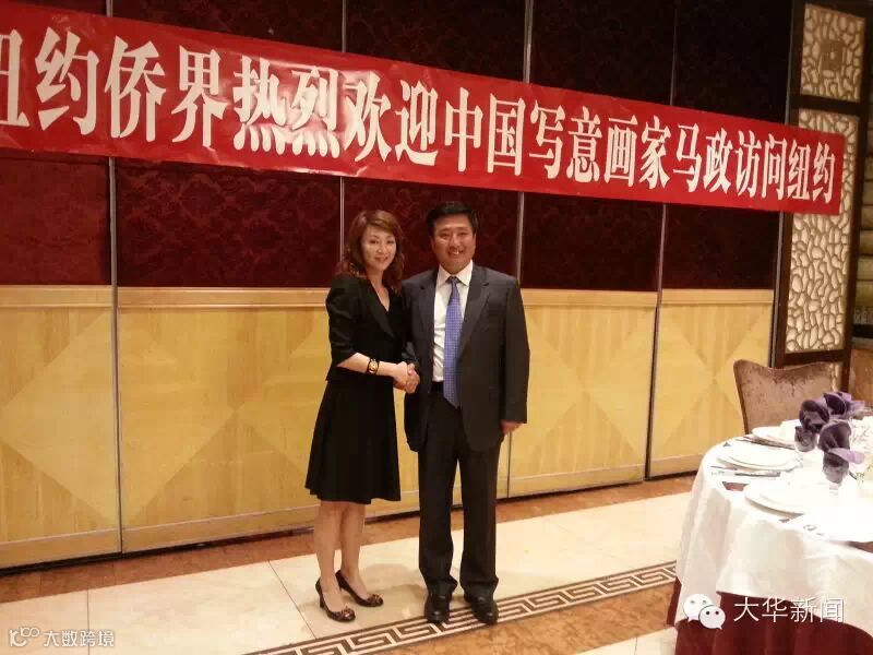 纽约侨界欢迎中国写意画家马政访问纽约(左:大华新闻网执行总监 孙芳;右:写意画家 马政)