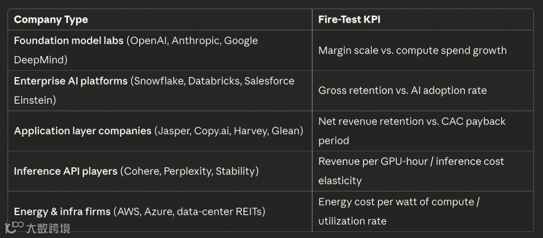 我们如何评估这个周期中的防火性?每类公司面临不同的耐久性测试。理解这些指标区分真正的生态系统强度与暂时丰富:
