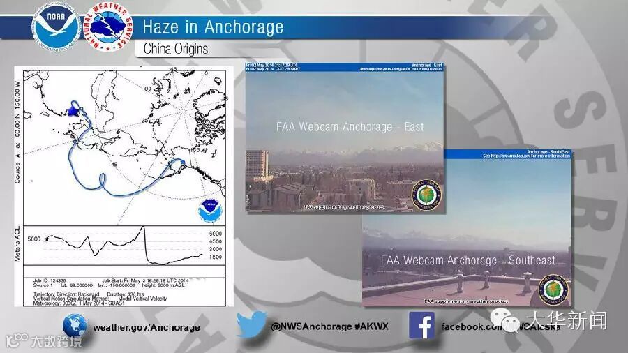 尽管根据科学家的分析,近来发生在安克雷奇的空气污染来源广泛,但美国国家气象局阿拉斯加中心的脸书和Alaska Dispatch的报道只提到了中国。
