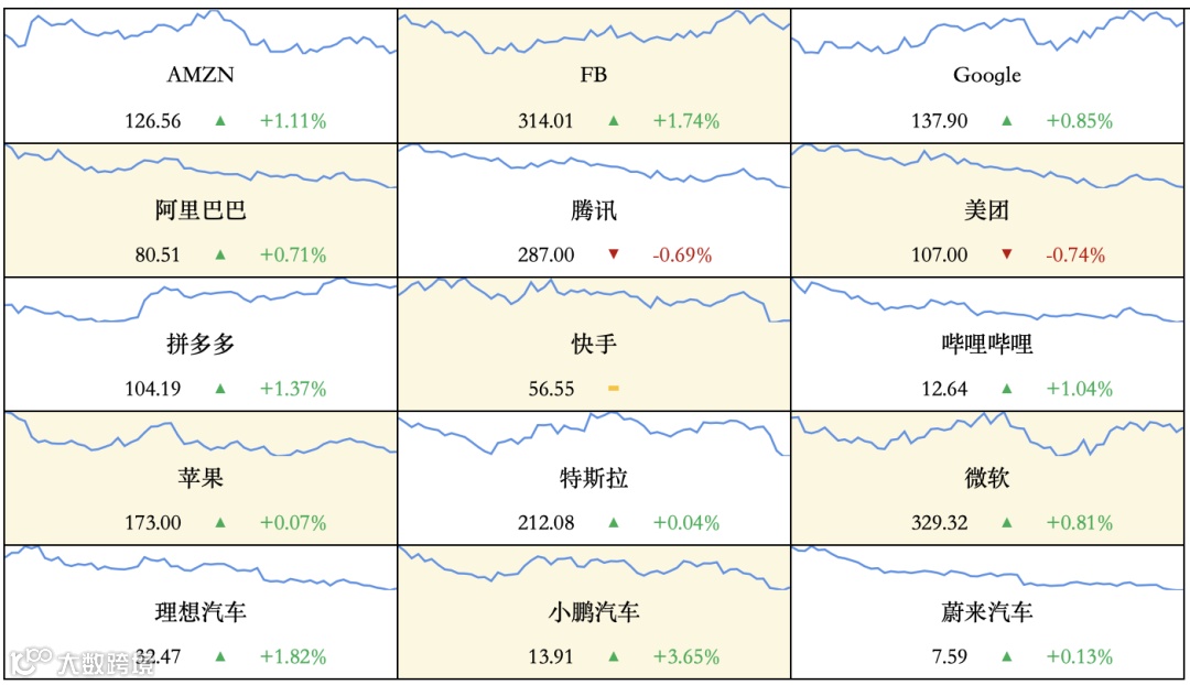 ▷ 美股:道琼斯工业指数下跌0.58%,报32936.41点;标普500指数下跌0.17%,报4217.04点;纳斯达克指数上涨0.27%,报13018.33点。