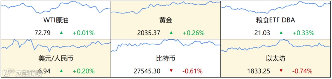 ▷ 商品:油价下跌超过1美元,结束此前连续三天的涨势,经济数据表明美联储可能进一步加息。布兰特原油期货下跌1.03美元,或1.3%,结算价报每桶76.41美元;美国原油期货下跌1.15美元,或1.6%,结算价报每桶72.56美元。