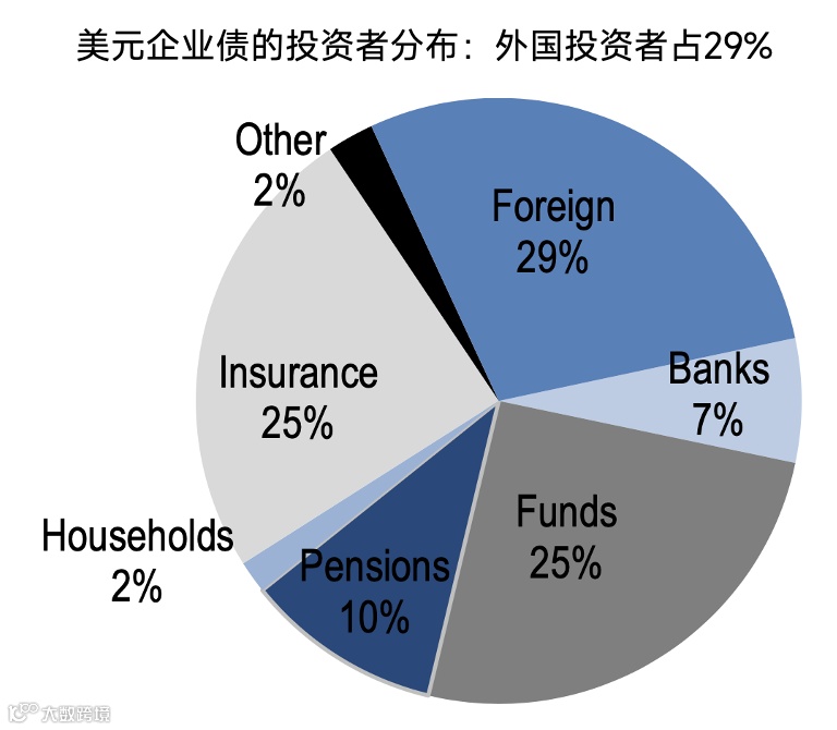 而在美元企业债市场中,外国投资者占比为29%(见下图)。
