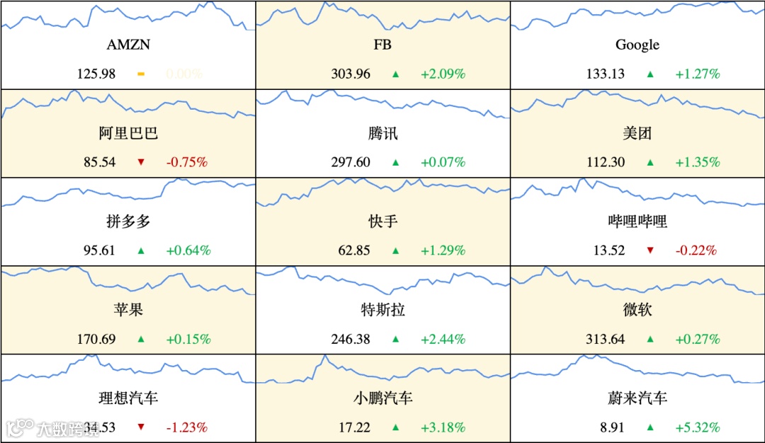 ▷ 美股:美国三大股指全线收涨,道指涨0.35%报33666.34点,标普500指数涨0.59%报4299.7点,纳指涨0.83%报13201.28点。英特尔涨1.65%,联合健康集团涨1.3%,领涨道指。脸书涨2.09%,特斯拉涨0.6%。中概股涨跌不一,世纪互联涨9.52%,思享无限跌22.6%。