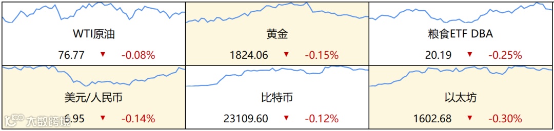 ▷ 发达国家债券:欧债收益率集体上涨,英国10年期国债收益率涨2.2个基点报3.822%,法国10年期国债收益率涨6.8个基点报3.114%,德国10年期国债收益率涨7个基点报2.645%,意大利10年期国债收益率涨5.7个基点报4.464%,西班牙10年期国债收益率涨6.3个基点报3.593%。