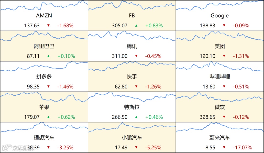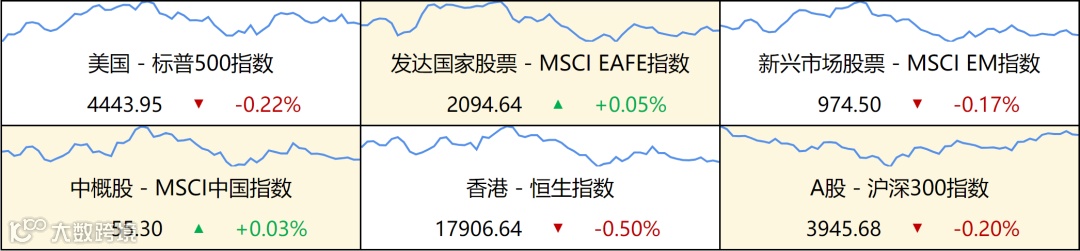 美国三大股指全线收跌,道指跌0.31%报34517.73点,标普500指数跌0.22%报4443.95点,纳指跌0.23%报13678.19点。