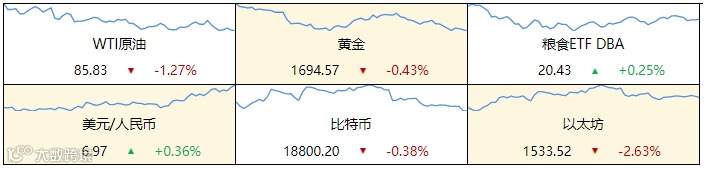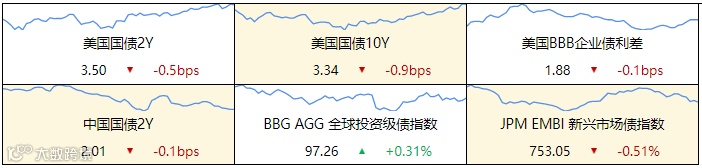 ▷ 发达国家债券:欧债收益率普遍上涨,英国10年期国债收益率涨15.7个基点报3.091%,法国10年期国债收益率涨3.5个基点报2.219%,德国10年期国债收益率涨7.4个基点报1.631%。