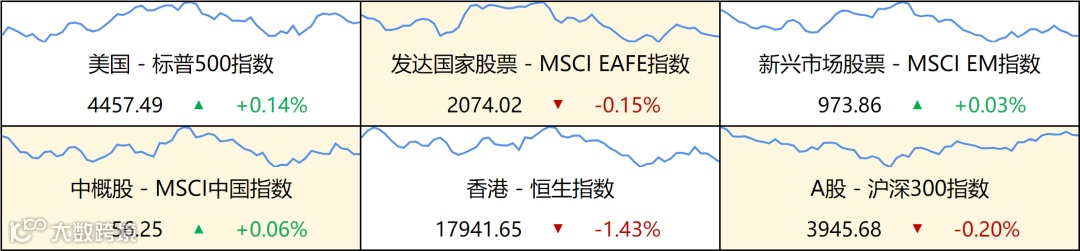 ▷ 发达国家股票:欧洲股市上涨,但周线下跌,投资者对经济前景恶化和美国利率走势感到担忧,焦点转向下周的央行行动。泛欧STOXX 600指数上涨0.2%,结束七日连跌,但本周下跌0.8%。英股富时指数收高0.49%,德股DAX指数小升0.14%,法股CAC-40指数攀升0.62%。