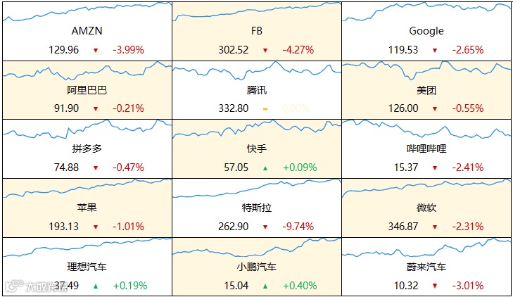 道指涨0.47%,标普500指数跌0.68%,纳斯达克跌2.05%。科技巨头财报“开门黑”,纳指四个多月来首次一日跌超2%。奈飞跌超8%、创七个月最大跌幅,特斯拉惨跌近10%、创三个月最大跌幅,芯片股跑输大盘,台积电和AMD跌超5%,英伟达跌超3%。而道指连涨九日,创近六年最长连涨,强生收涨6%。