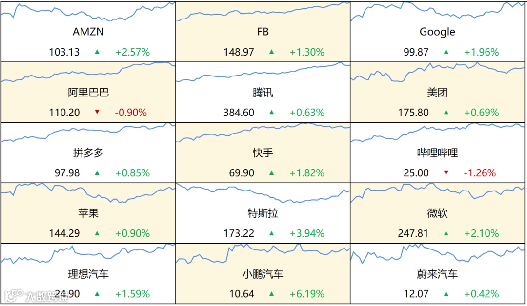 ▷ 美股:美国三大股指全线收涨,道指涨1.09%,标普500指数涨1.46%,纳指涨1.67%。万得美国TAMAMA科技指数涨1.87%,特斯拉涨3.94%,亚马逊涨2.57%。中概股多数上涨,亿航智能涨10.82%,图森未来涨8.25%。1月份,道指涨2.83%,标普500指数涨6.18%,纳指涨10.68%。