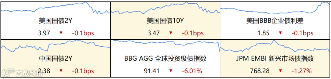 ▷ 美国债券:美国公债收益率下跌,指标10年期公债收益率尾盘报3.502%,两年期美债收益率报3.989%。
