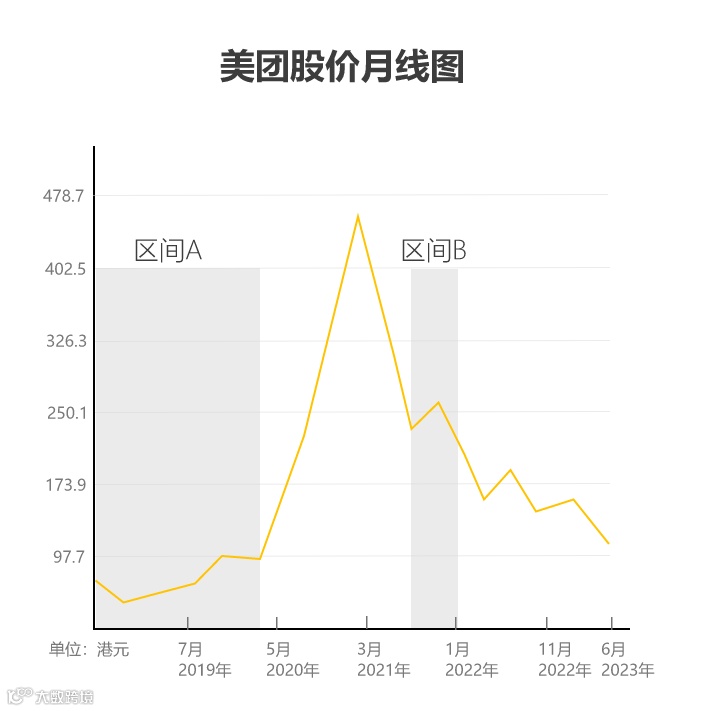 而DQ(累沽期权)最不适合股价上涨前购买。比如美团股价中的区间A,虽然股价长期处于50-100港元的震荡区间,但如果买了DQ(累沽期权),虽然前期可能会挣点小钱,但是会错失后面股价暴涨的巨额收益,卖飞的感觉比亏钱还要痛苦。