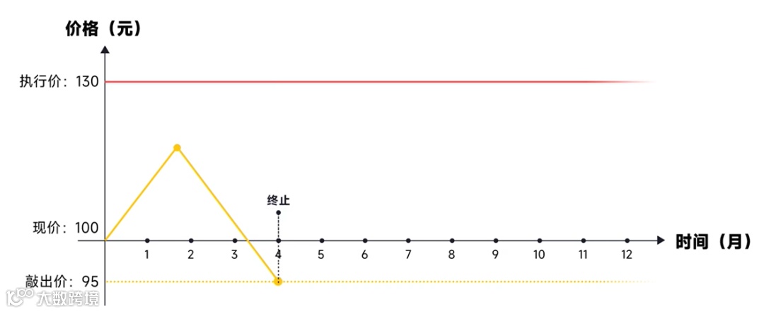 敲出价(Knock-out Price):敲出价是DQ合约中约定的一个价格水平,通常低于挂钩股票(标的)的初始价格。当挂钩股票(标的)在观察日的收盘价小于等于敲出价时,合约结束。