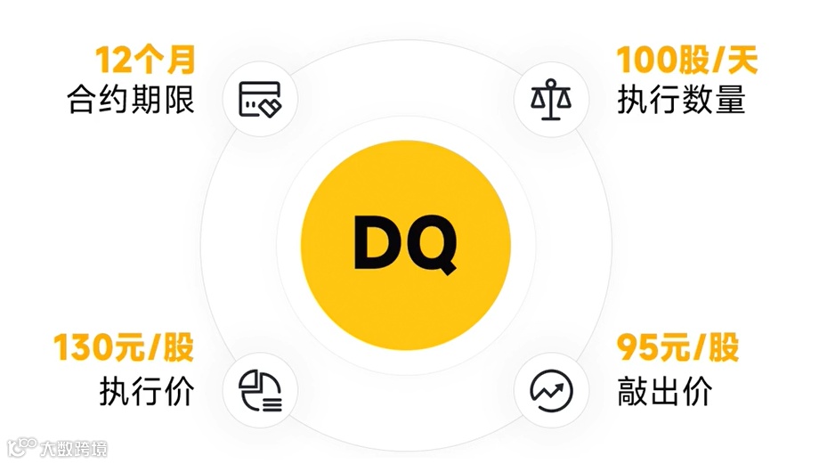 执行价(Strike Price):执行价是DQ合约中约定的一个价格水平,通常高于挂钩股票(标的)的初始价格。在合约持续期间投资者每日需以执行价卖出挂钩股票(标的)。