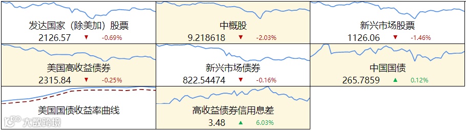 ▷ 港股:早盘低开后冲高,随后快速回落并在午后维持弱势震荡。恒生指数收跌1.23%,恒生科技指数跌2.48%,恒生国企指数跌1.49%。医药、消费板块跌幅居前,海底捞跌超7%领跌蓝筹;抗疫股大跌,开拓药业跌近25%,腾盛博药跌近13%。