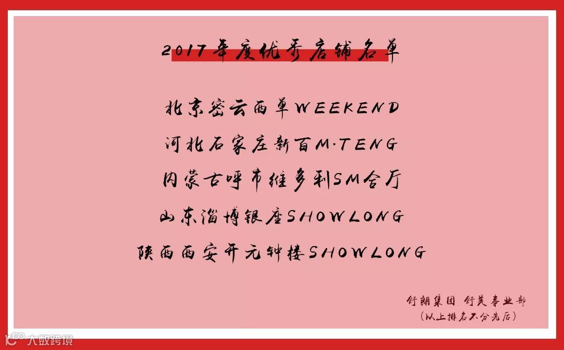 2018年1月11日,舒朗集团舒美事业部在18F/W品评会之际,举行了2017年度舒美事业部全国优秀店铺颁奖仪式,此次评选在全国SHOWLONG、M.TENG、SHOWLONG WEEKEND店铺进行评选,共选出5个优秀店铺进行表彰。