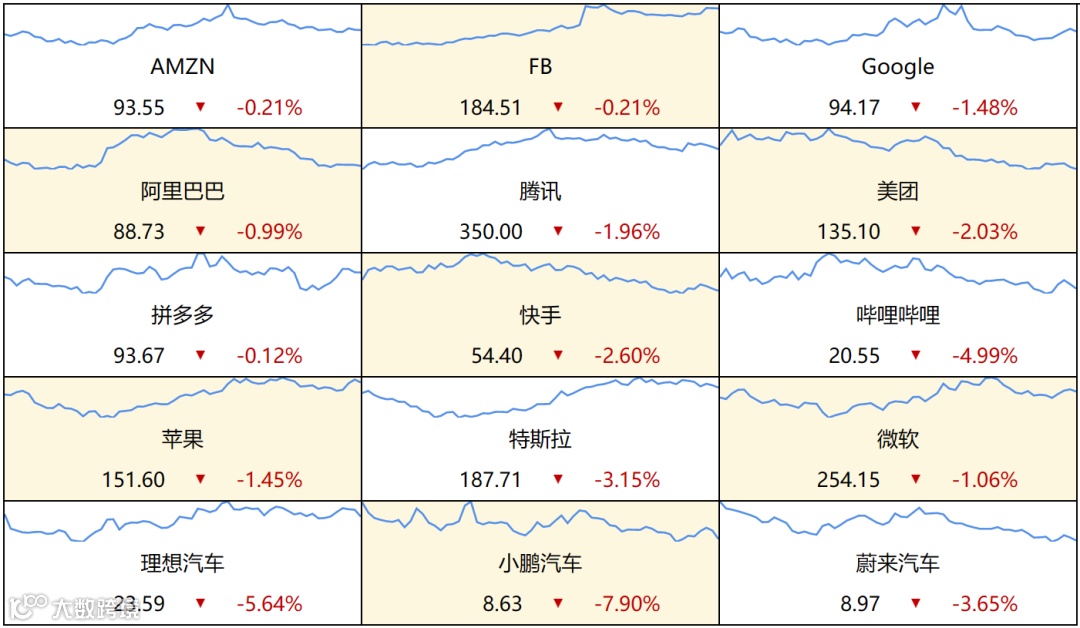 ▷ 内地A股:A股三大指数明显回调,上证指数失守3300点关口,收盘跌1.11%报3285.1点;深证成指跌1.98%,创业板指跌1.97%,万得全A、万得双创分别跌1.7%、2.2%。
