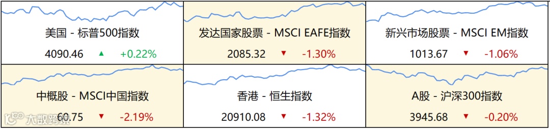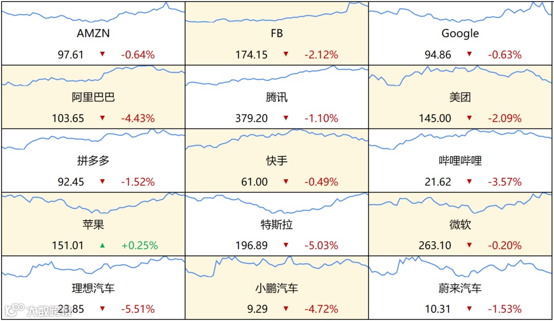 ▷ 港股:港股单边走弱,恒生指数收跌2.01%,周跌2.17%;恒生科技指数跌4.58%,周跌5.87%;恒生国企指数跌2.56%,周跌3.53%。百度跌超7%领跌蓝筹,小鹏汽车、理想汽车跌近8%。