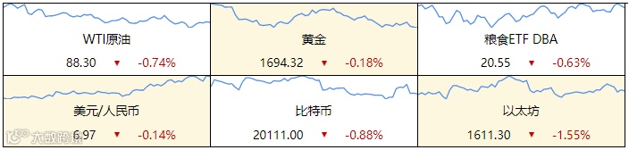 ▷ 商品:国际油价全线上涨,美油10月合约涨1.91%,报88.98美元/桶。布油11月合约涨1.43%,报94.50美元/桶。