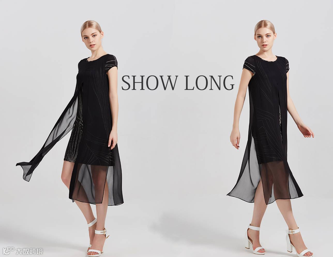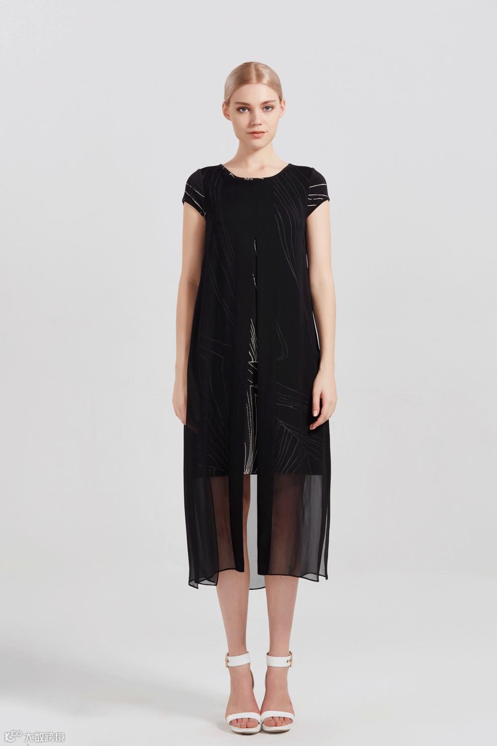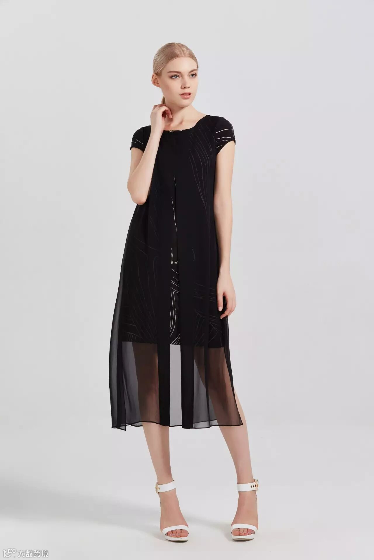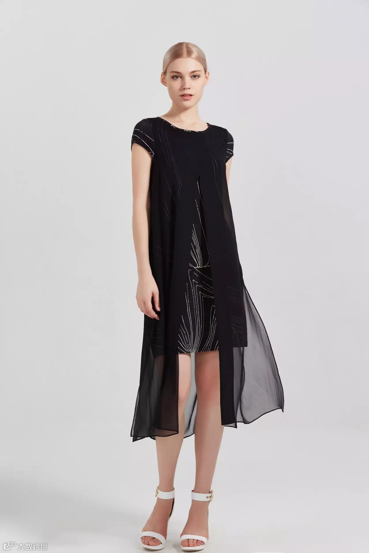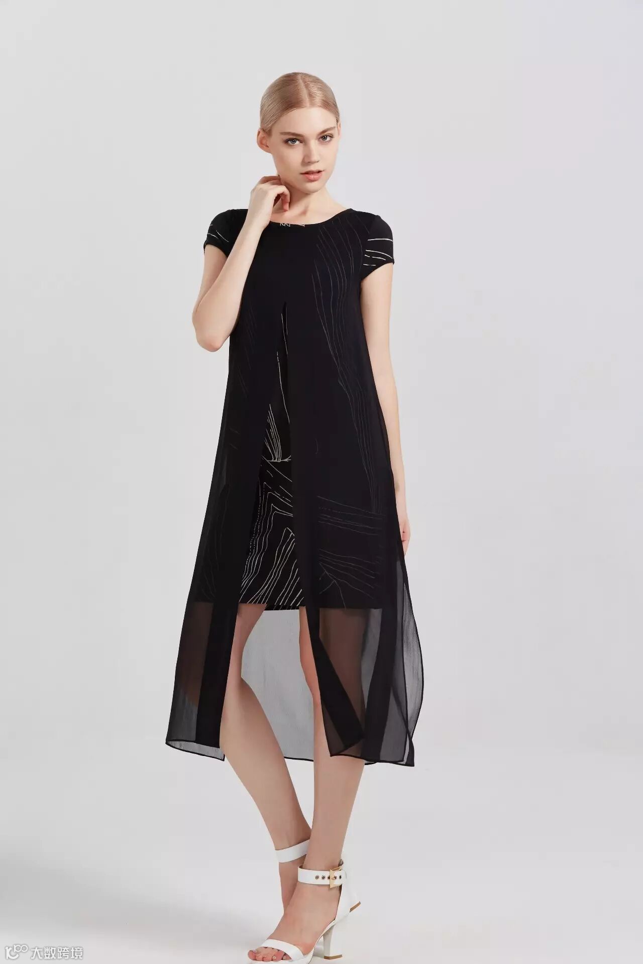 连衣裙的外层黑纱,层次感分明,包容性强,且灵动飘逸,充满了时尚感。