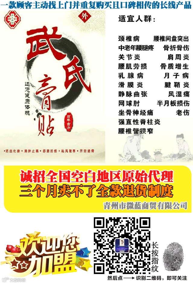 厂商推广:武氏膏贴诚招微商代理 客户口碑非常棒的产品,适合长期做的产品