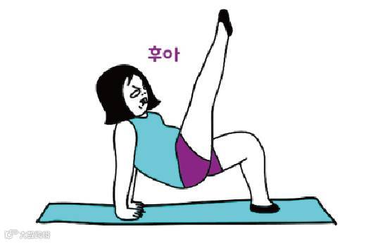 用手臂将上半身支撑,臀部离地,大腿向前伸展,随着手臂和臀部的上下伸展运动腿部。