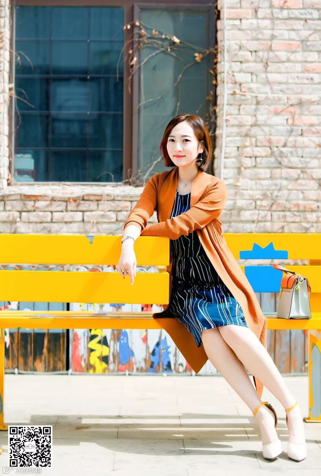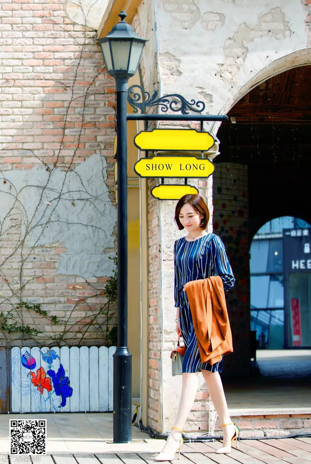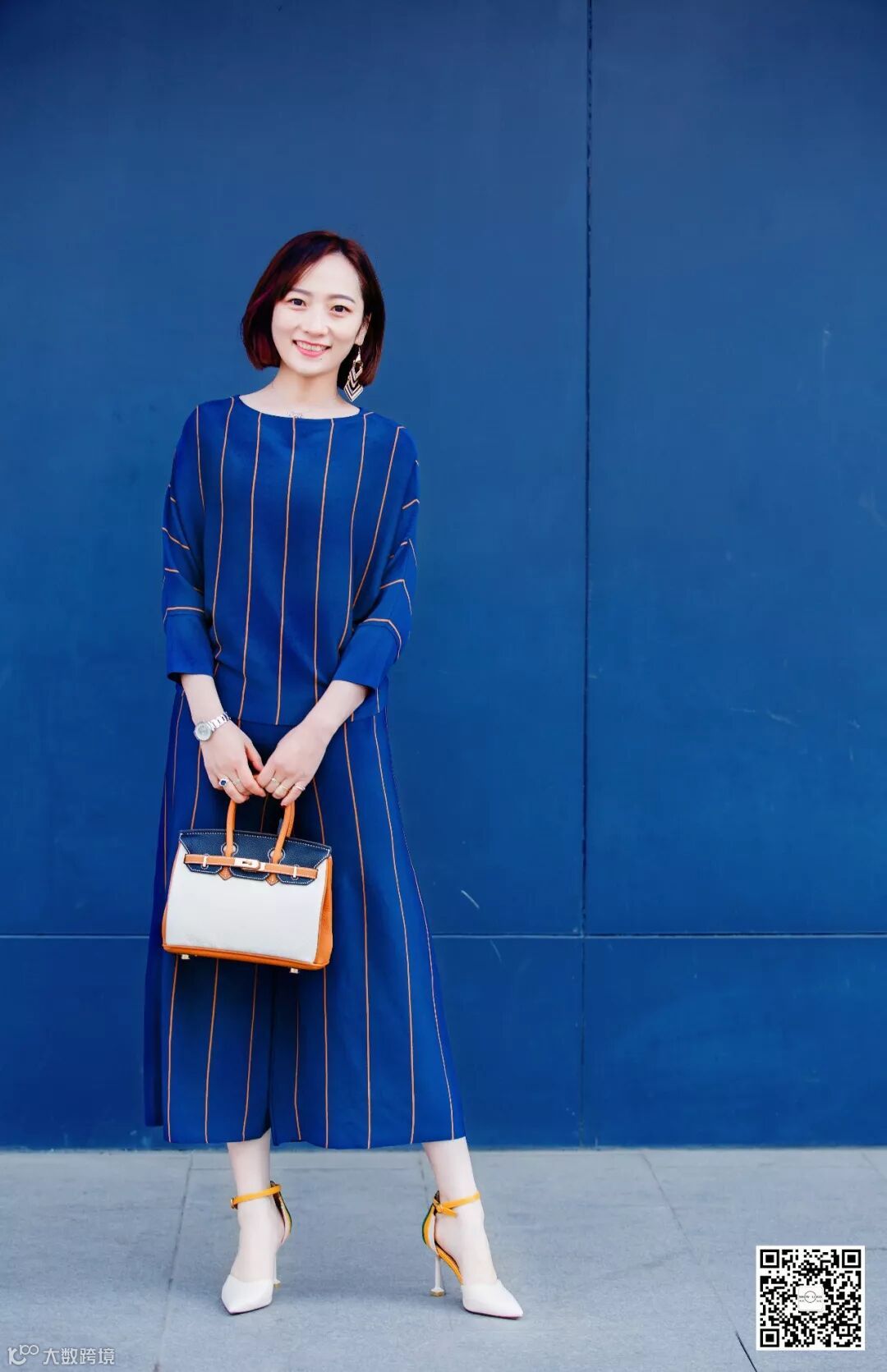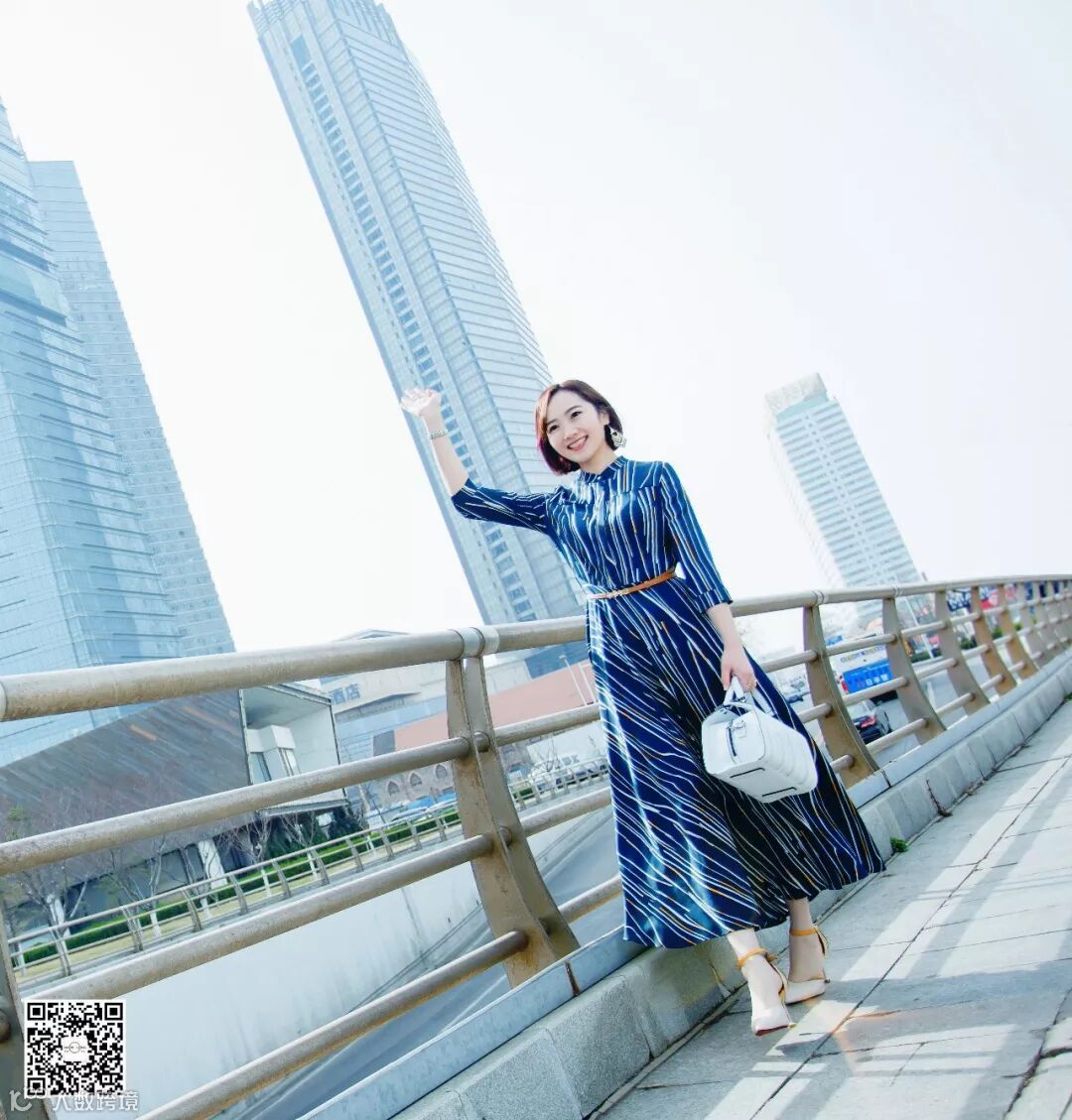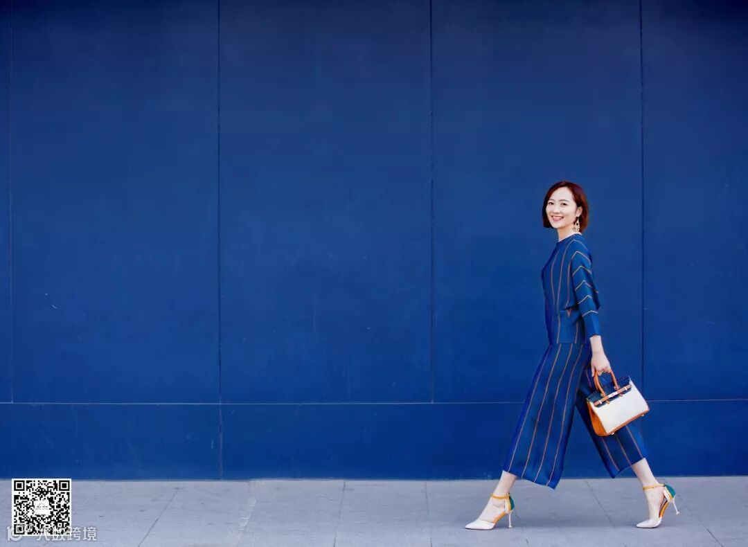 行走的路上,同色系的蓝色交织长裙,更加优雅大方...