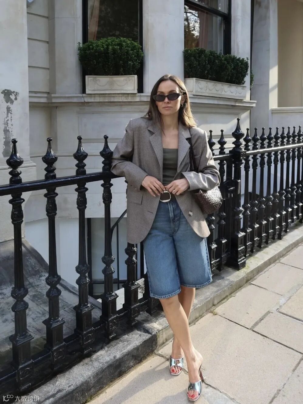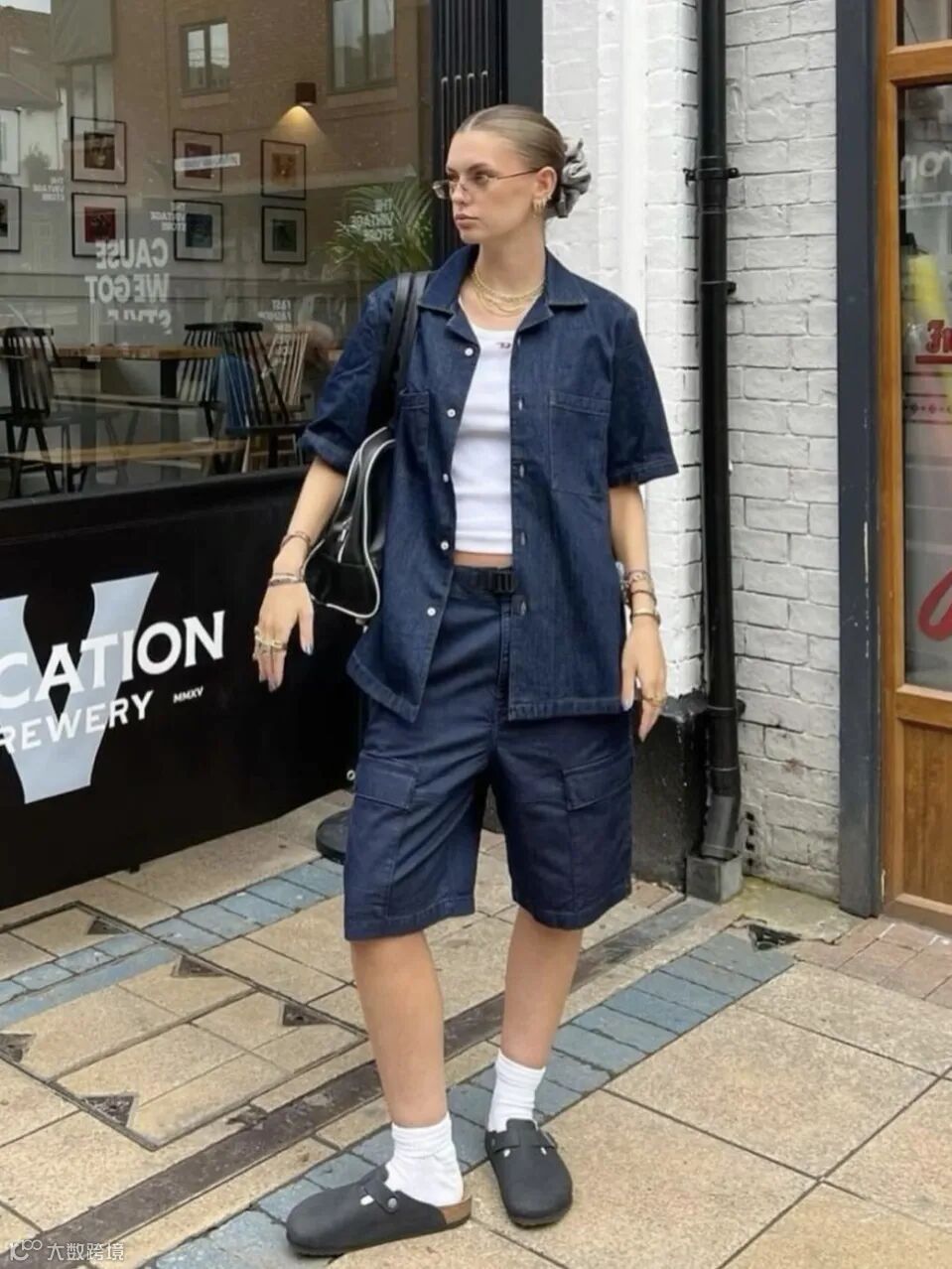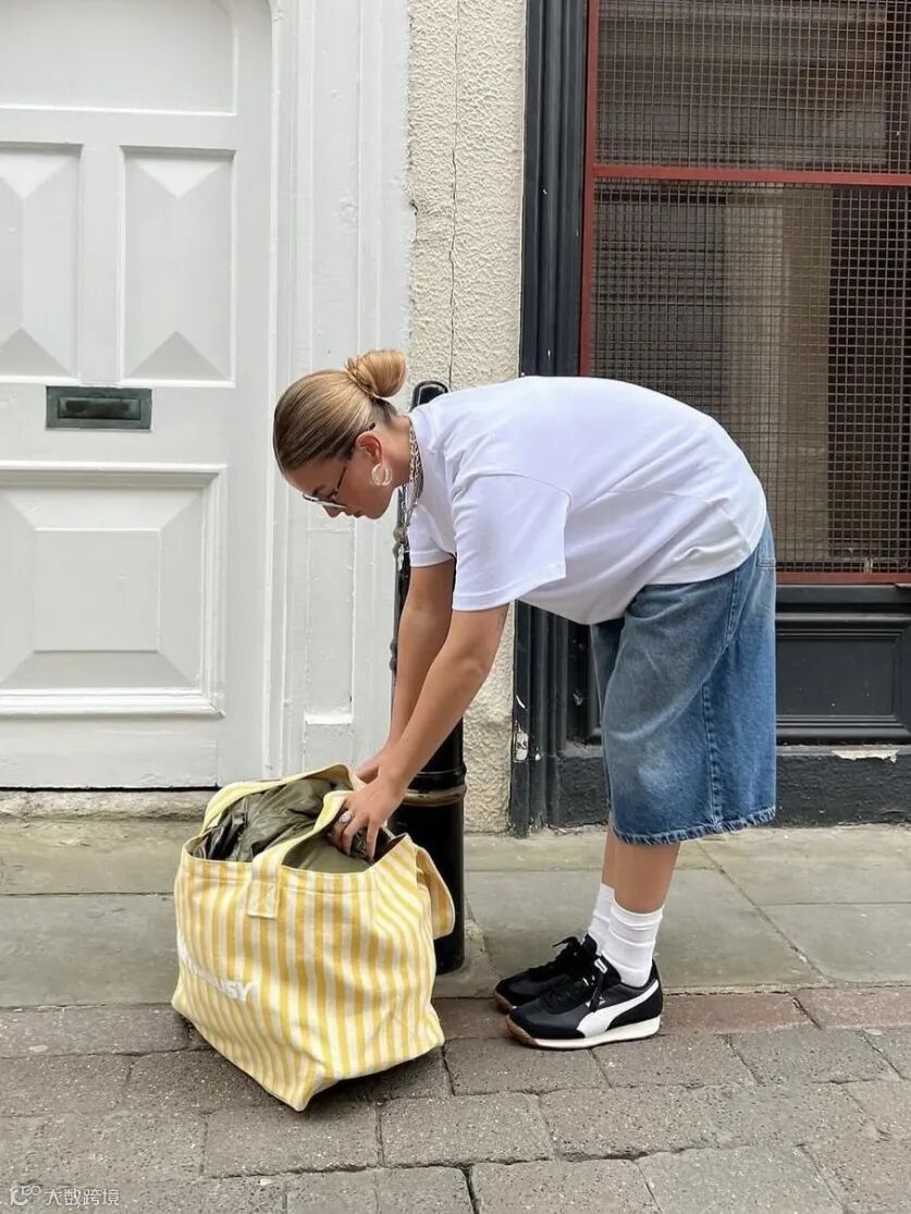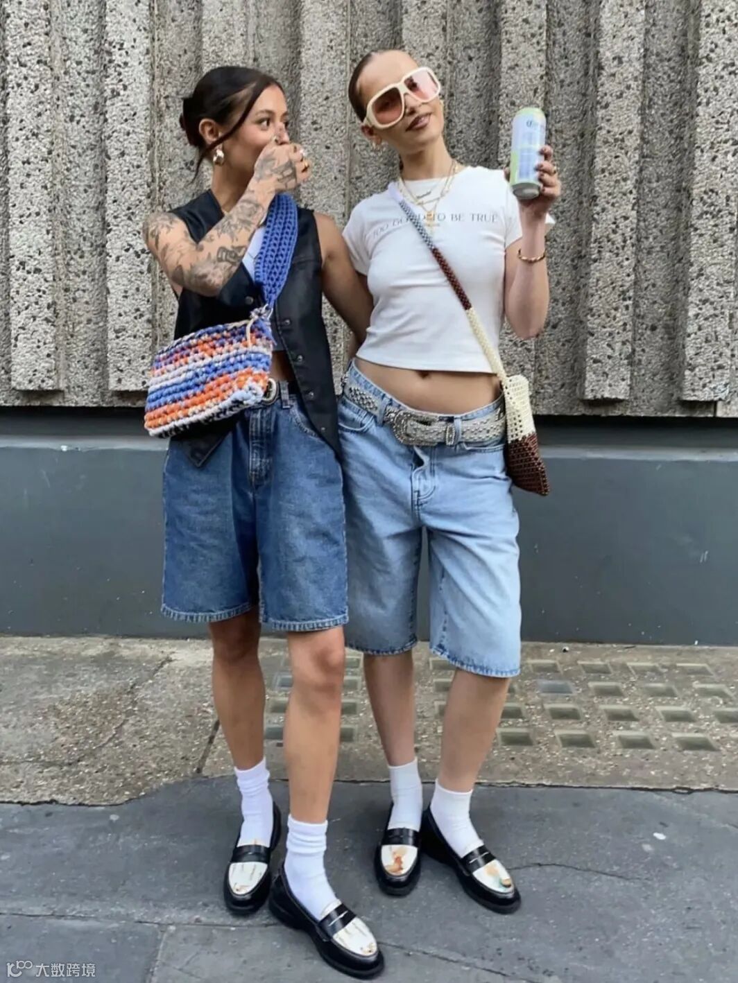 IG时尚博主早已不动声色的将Jorts结合到了日常穿搭中,这也让Jorts在今夏的流行趋势愈演愈烈。