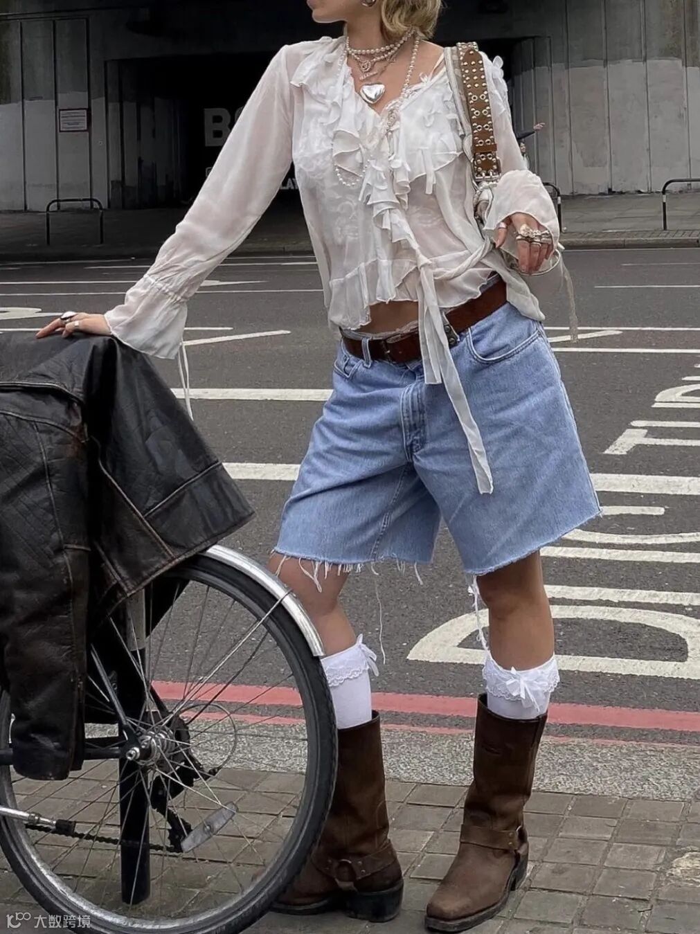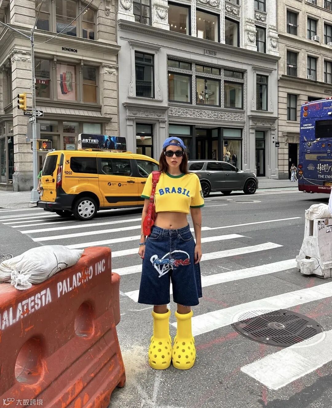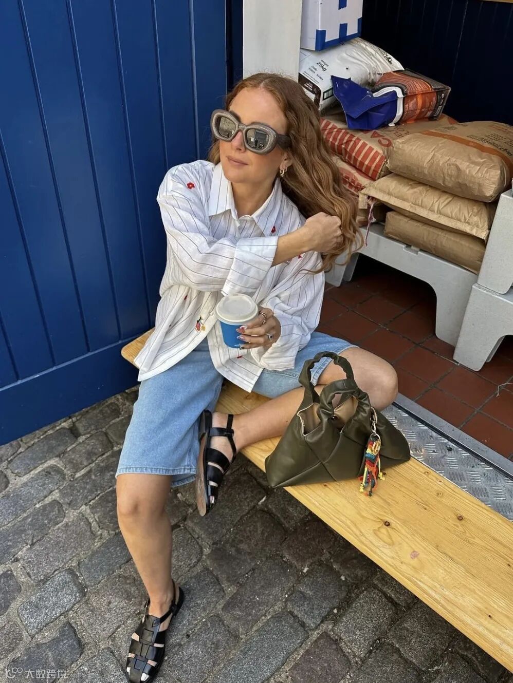 IG时尚博主早已不动声色的将Jorts结合到了日常穿搭中,这也让Jorts在今夏的流行趋势愈演愈烈。