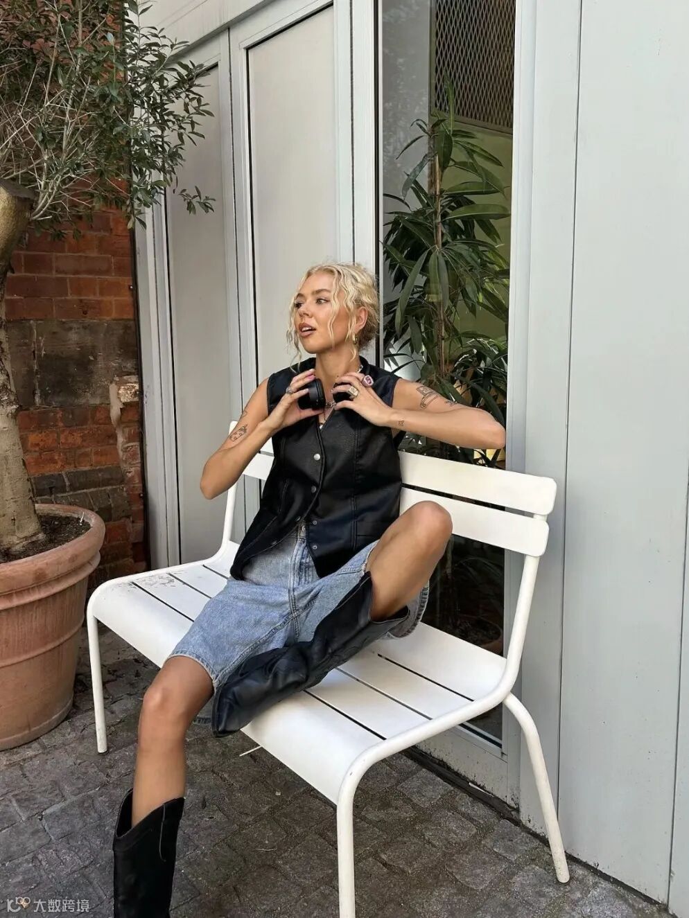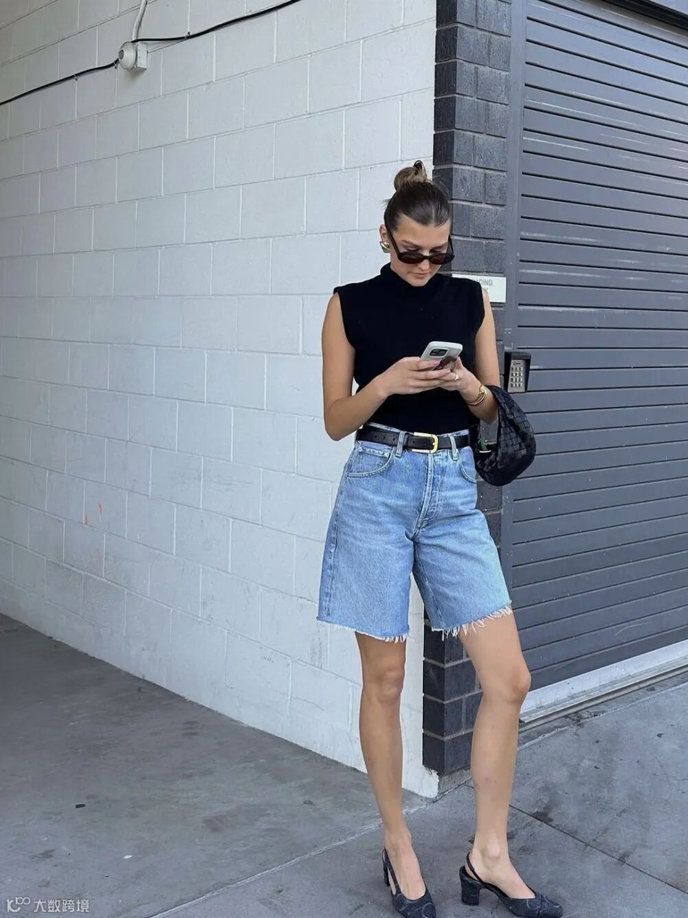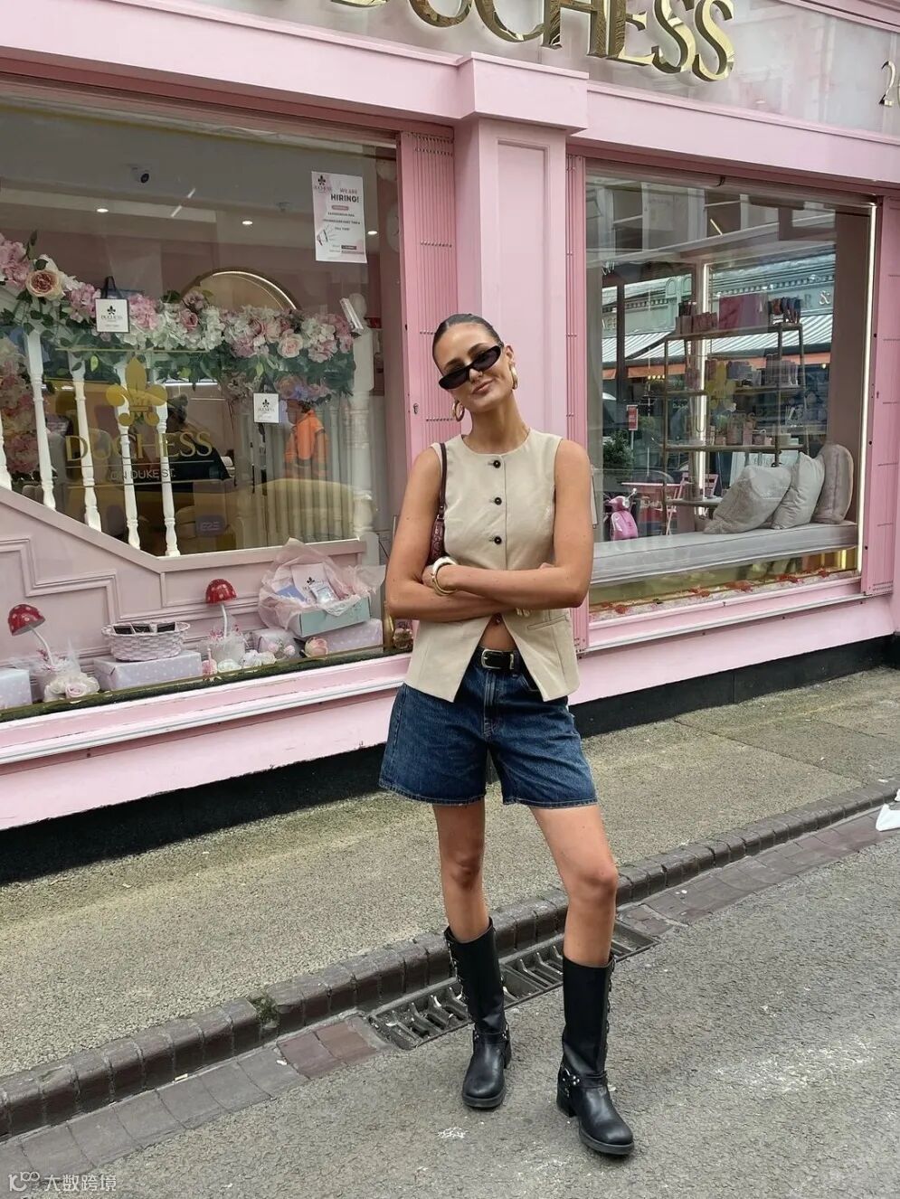 马甲搭配Jorts很有都市风的感觉,不管是通勤还是出游搭配都很适合。
