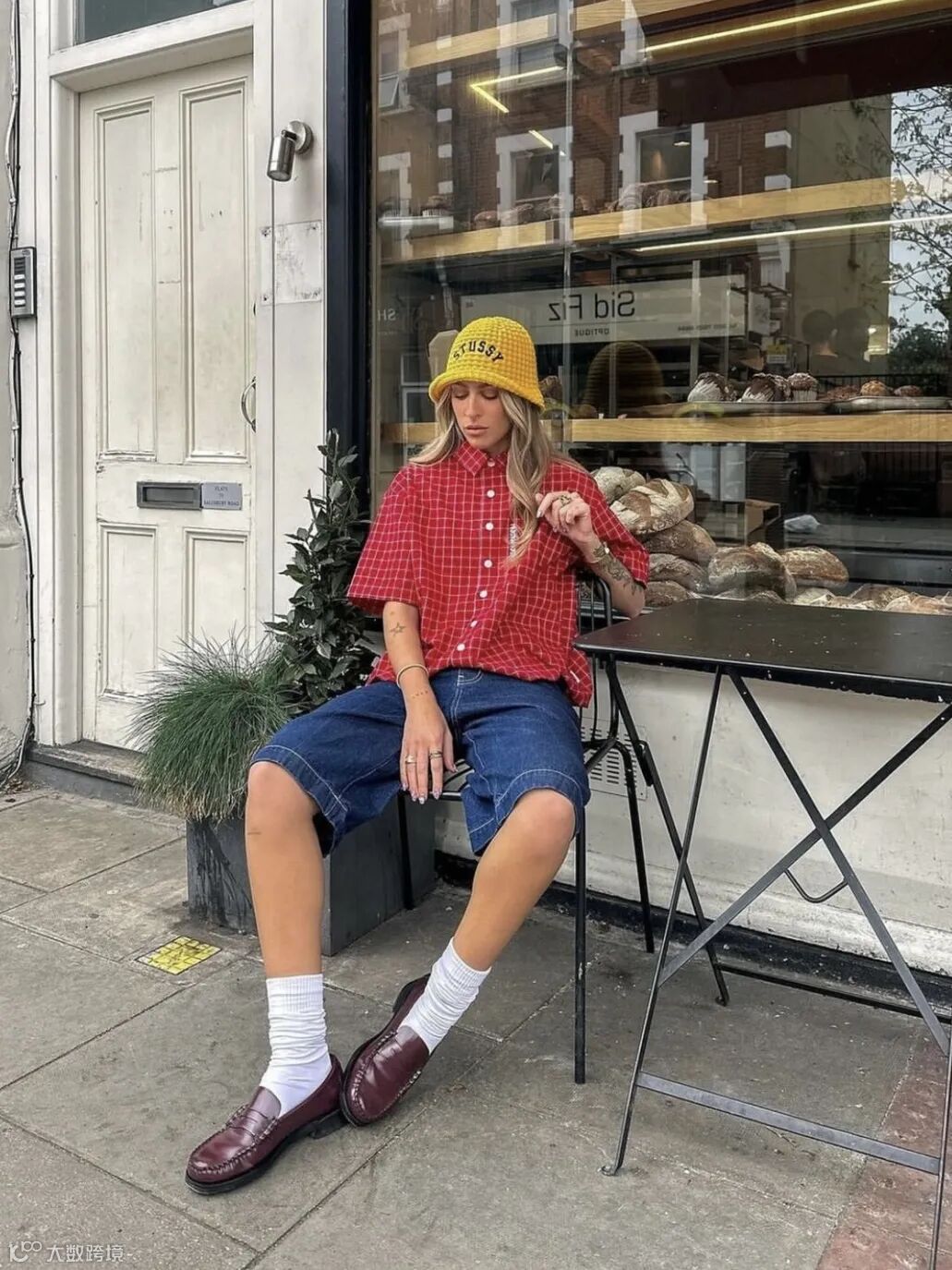 夏日短袖衬衫和Jorts的搭配自带Boyish的风格,休闲感十足。
