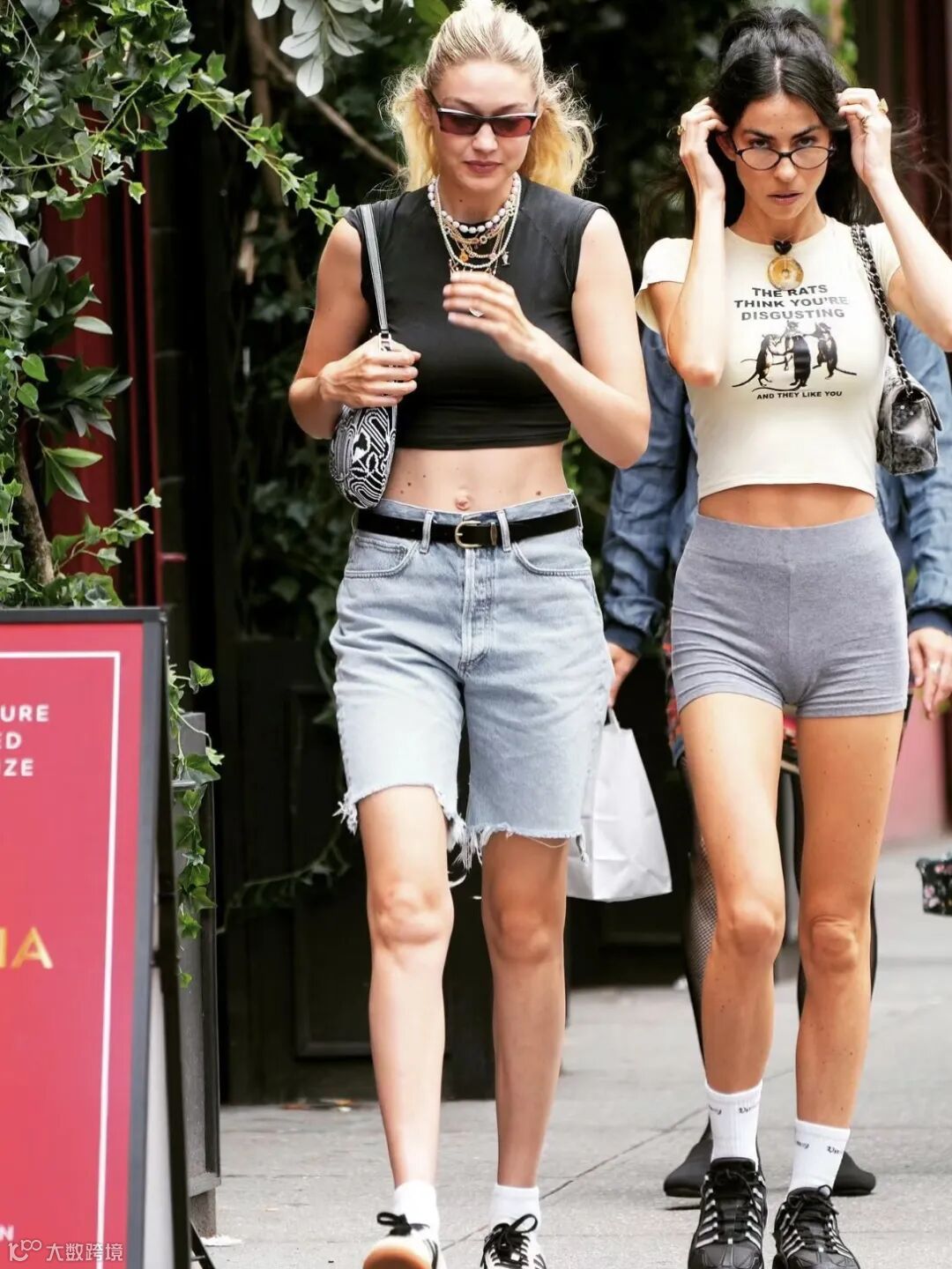 Bella Hadid、Hailey Bieber、GIGI Hadid、等明星超模对Jorts的搭配都是驾轻就熟。