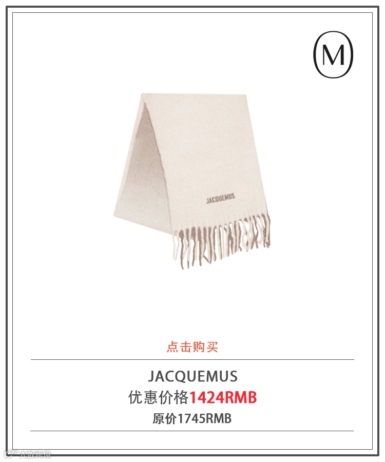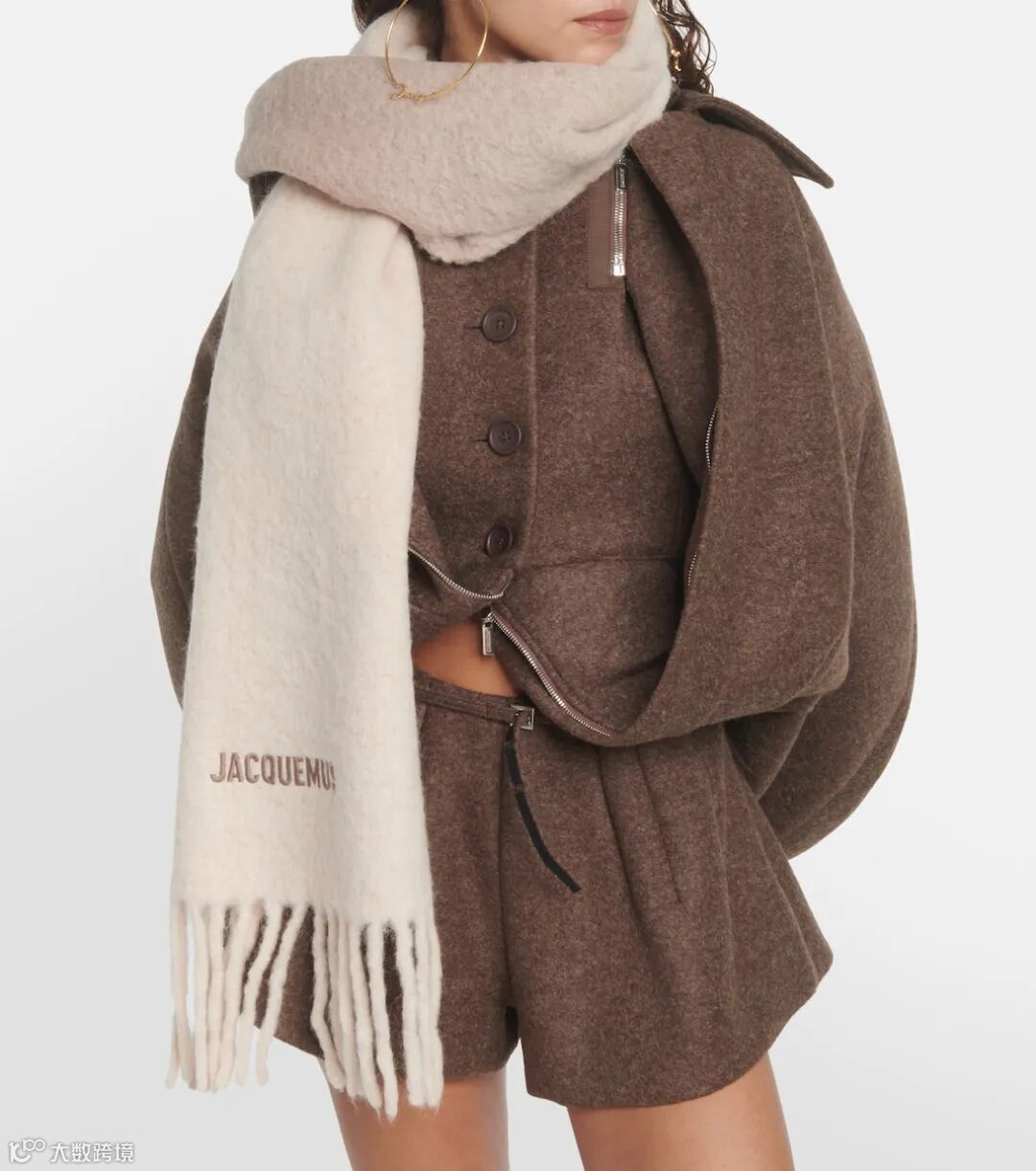 JACQUEMUS在每一个新系列的设计中都融入了极具特色的法国时尚风格。这款舒适的L“echarpe Moisson围巾甄选柔软的羊驼毛混纺面料制成,采用时尚的双色设计与流苏边。