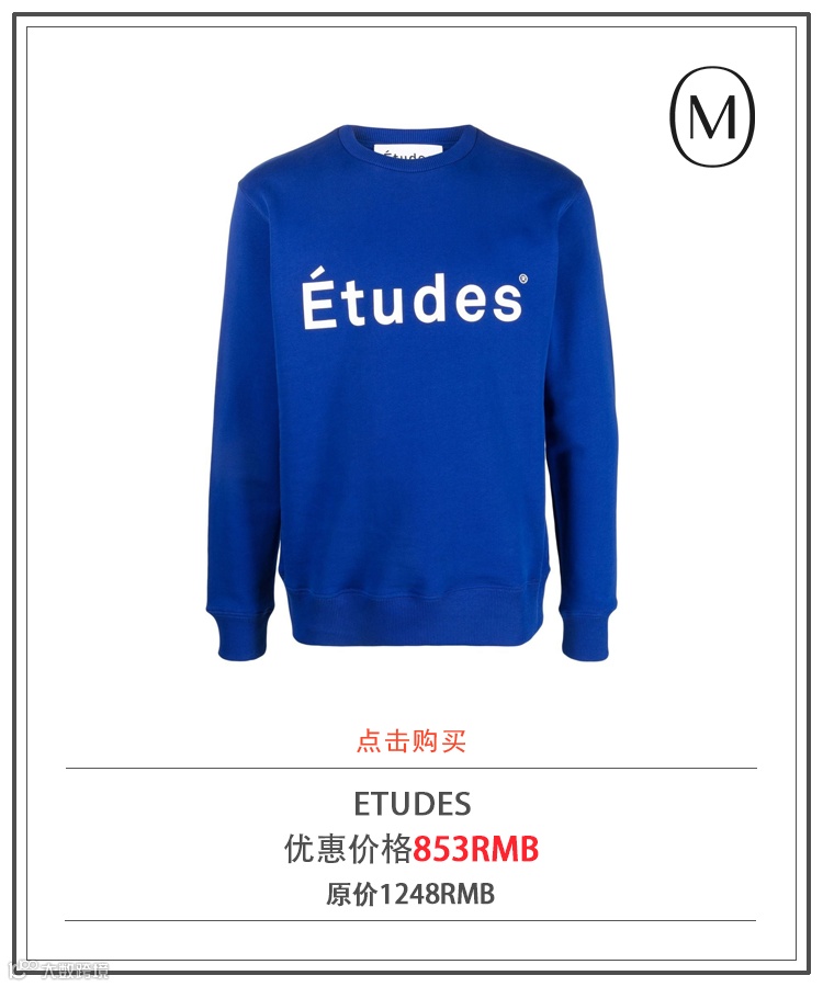 ETUDES这一法国品牌不断从书籍、绘画等不同艺术形式中获得灵感,将经典服装与街头服饰充分融合,成为了备受时髦人喜爱的小众品牌。如果说想入手一件ETUDES卫衣,那么一定是品牌标志性的配色“ETUDES蓝”的款式。