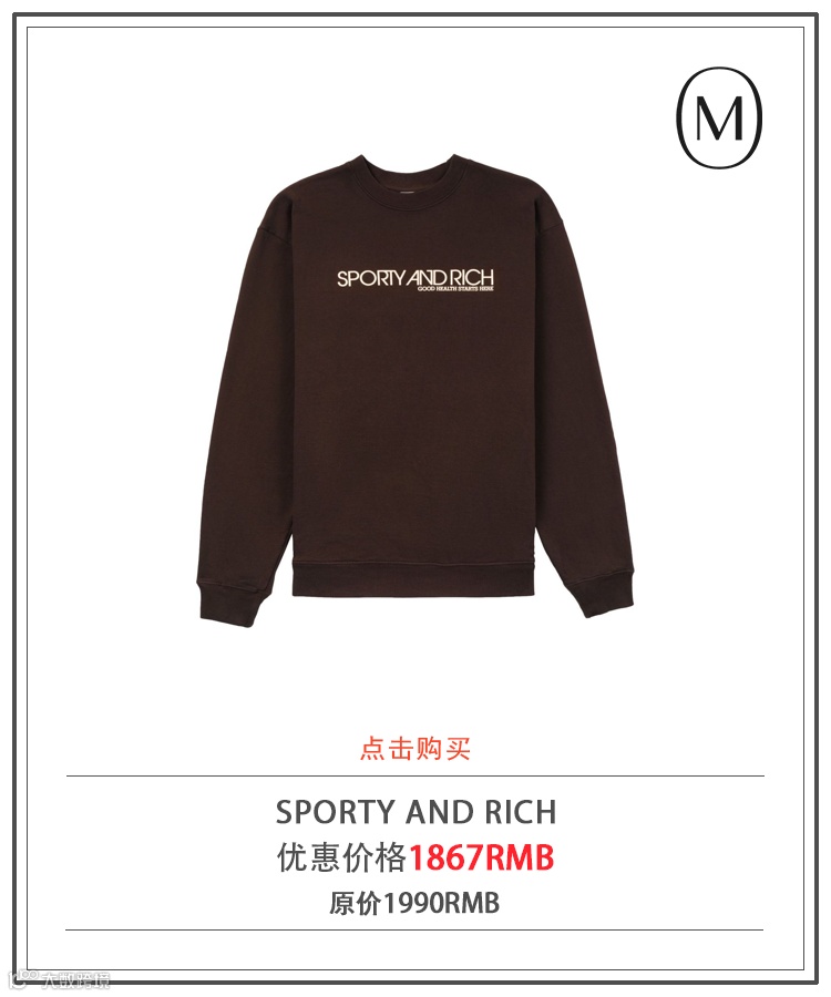 SPORTY&RICH,一个将复古运动装与时尚结合在一起的品牌,一个火遍欧美时尚圈的运动品牌。它以上世纪90年代时尚界黄金时代的复古时髦感为设计灵感,宣扬一种健康年轻又富有活力的生活方式。SPORTY&RICH的每一件单品都兼具时尚与舒适,随便一穿就能出片。