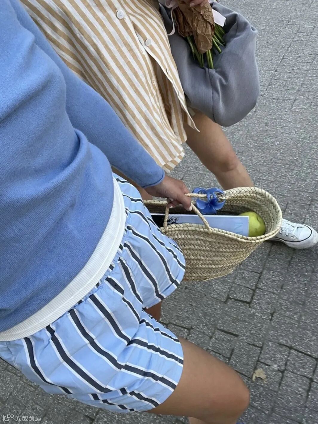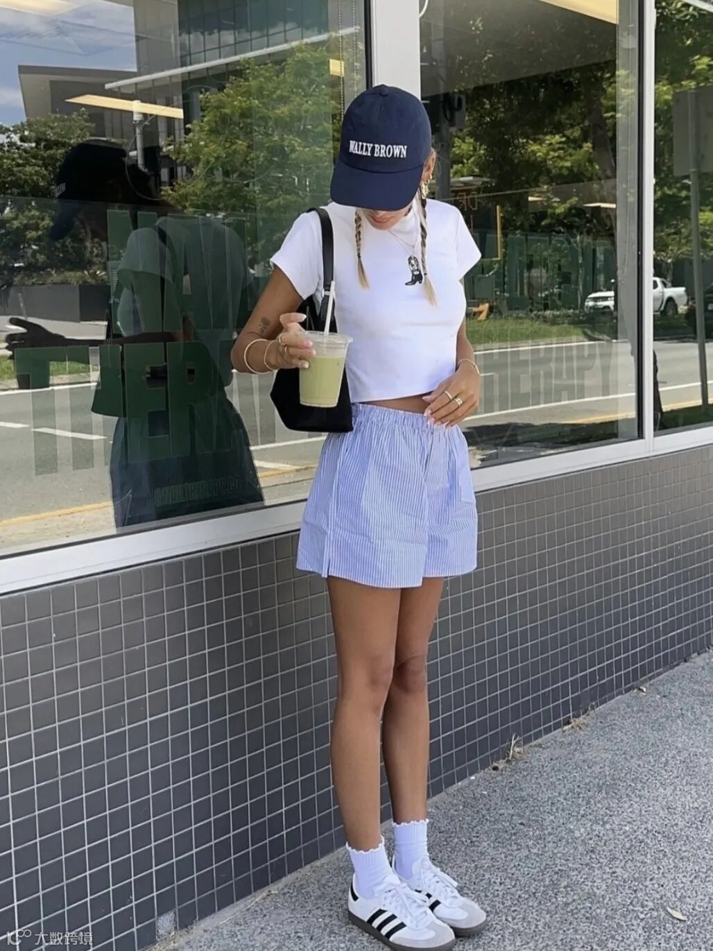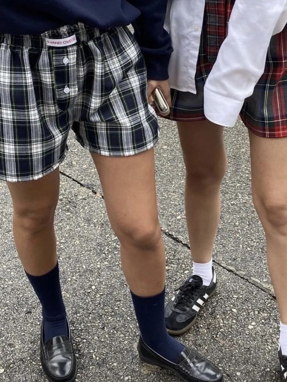 可能因为男友宽松的内裤太好穿了,而后直接晋升为男友内裤的外穿造型,各种男款条纹、格子的四角短裤在女生的身上毫无违和感。